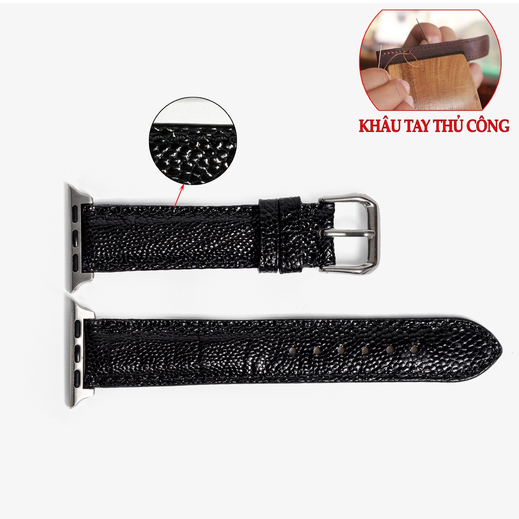 Dây da apple watch Bụi leather - D109, da đà điểu, khâu tay thủ công- series 3 series 4 series 5 series 6