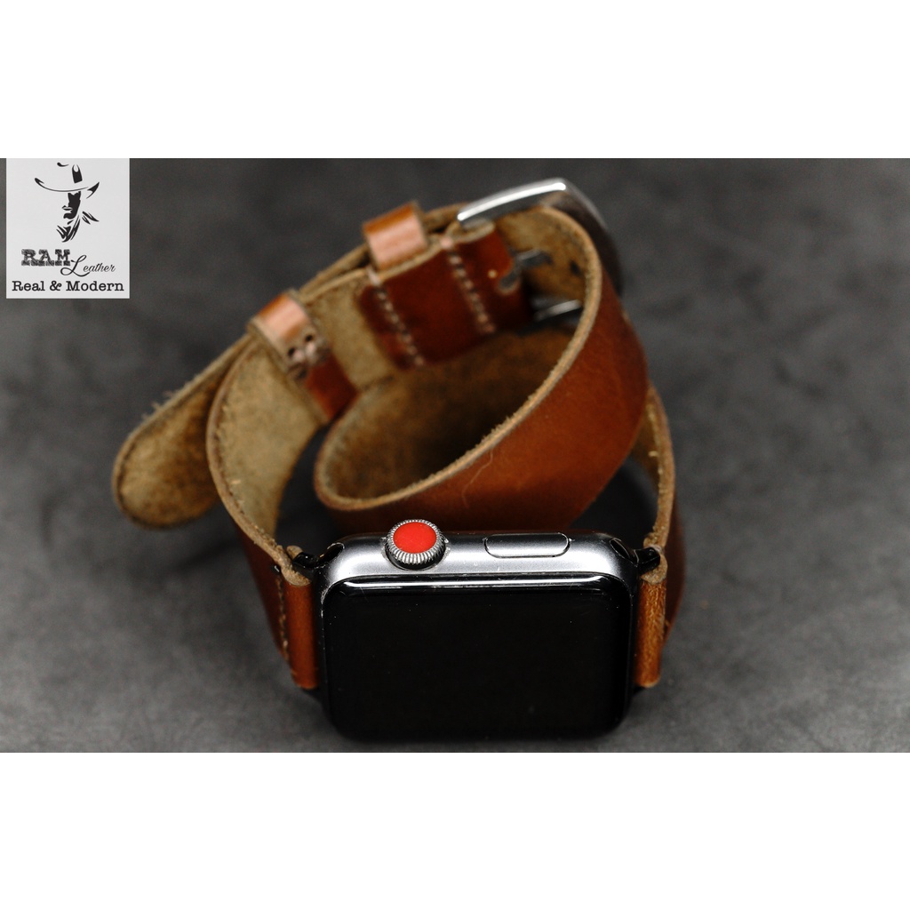 Giới thiệu Dây đồng hồ da bò cao cấp màu nâu đỏ RAM Leather doublestrap - tặng khóa chốt và cây thay dây